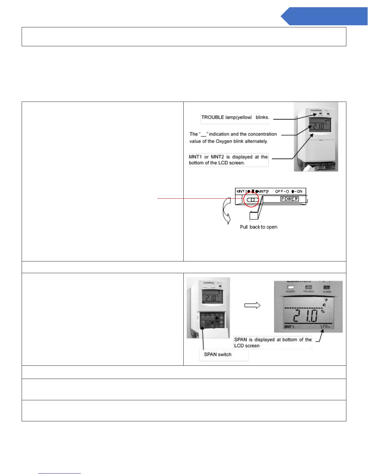 6. When the adjustment is completed, press the SPAN switch again. The SPAN indication in the