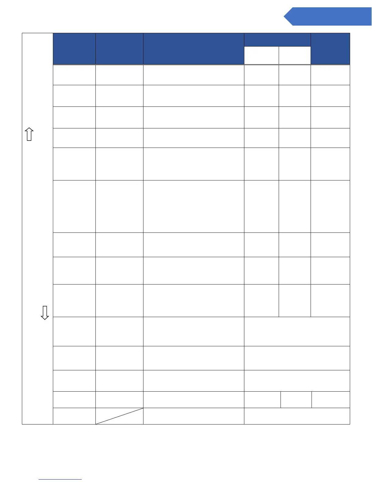 Each time the UP switch is pressed, it will move down the table to the next item.