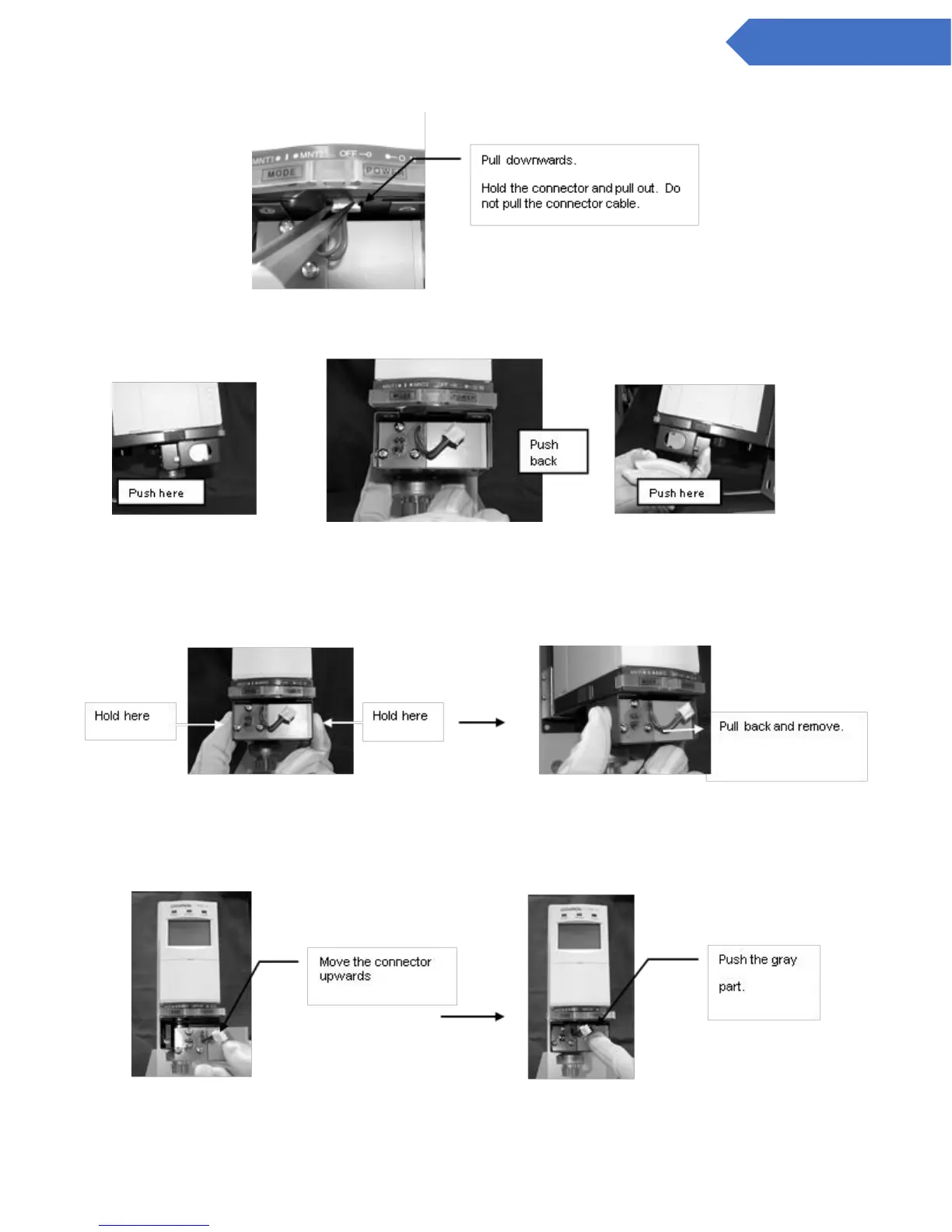 3. Removing the old pyrolyzer. Pull out the connector. When it is newly installed and there is no pyrolyzer,