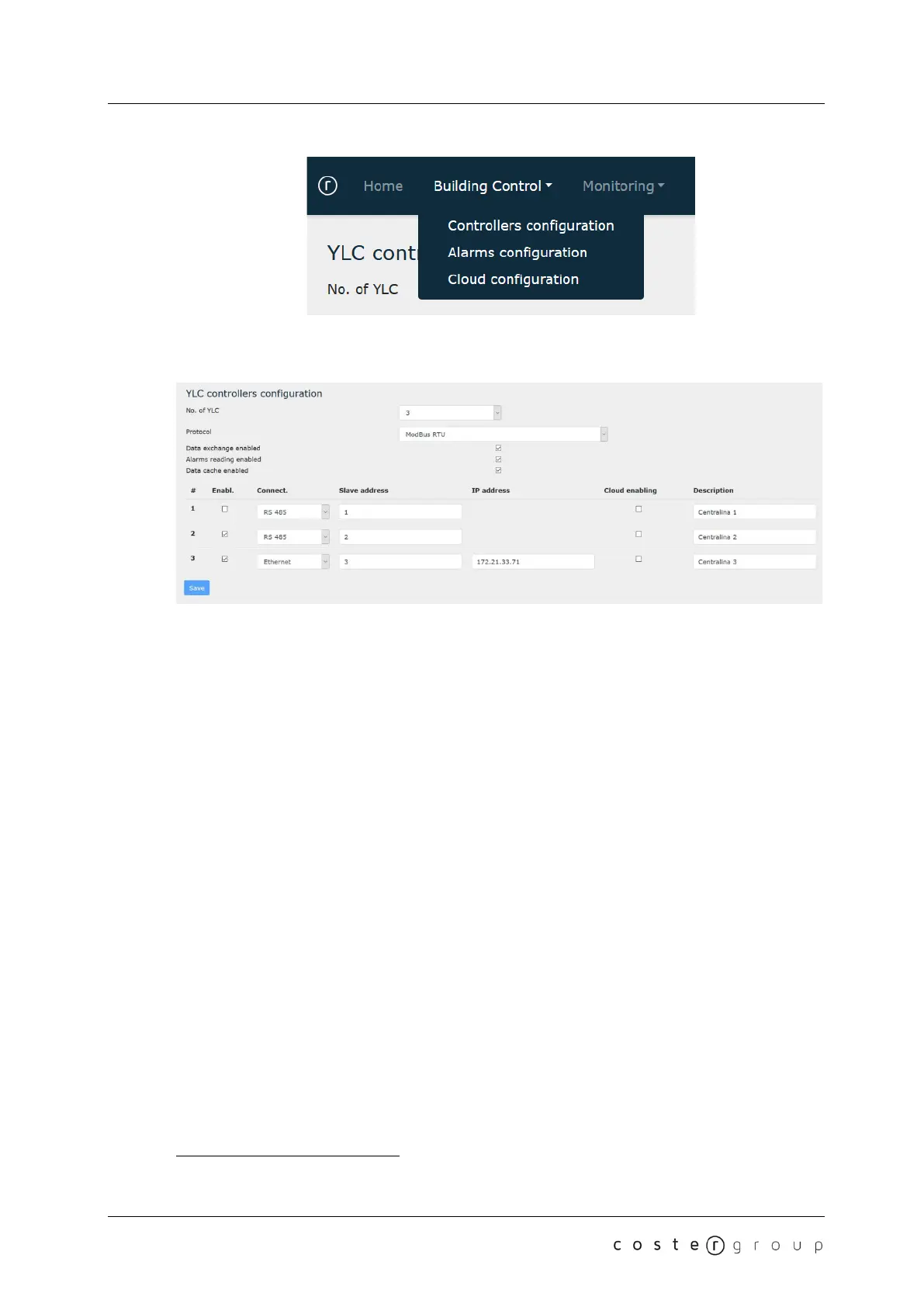NOTE: Modbus address and communication protocol must be the same as those set on YLC;