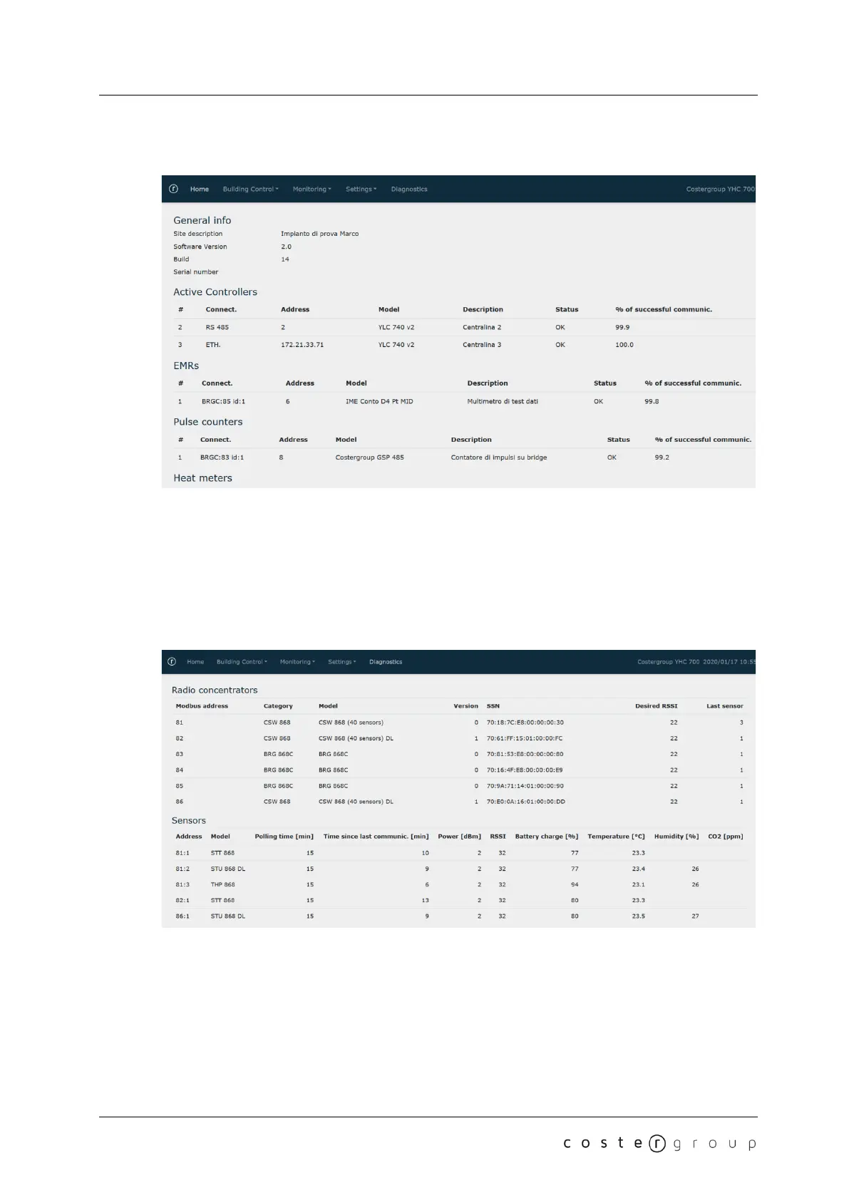 o Operating information and data read by concentrators, sensors and radio