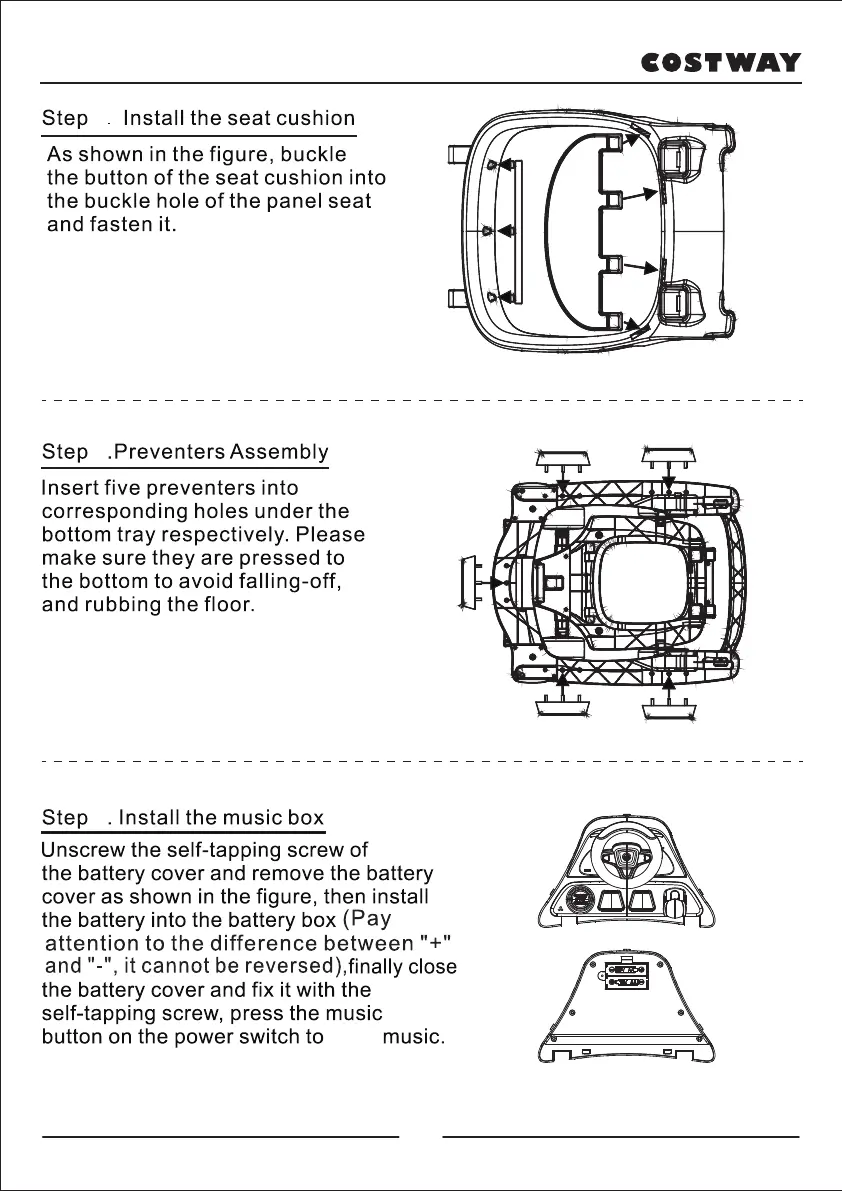 Costway BC10021 - Install Seat Cushion and Preventers; Install Music Box and Battery