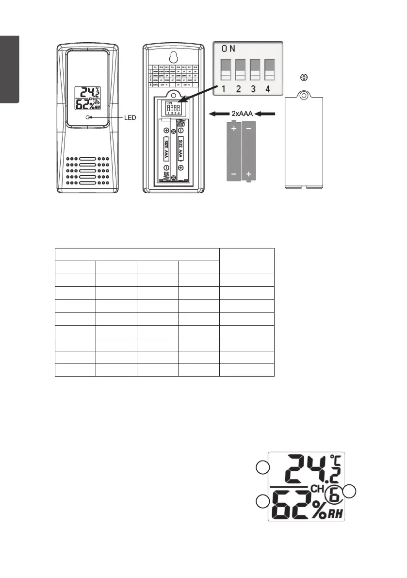 2. Set thechannel on which thesensor is to transmit by changing DIP switches 1−3