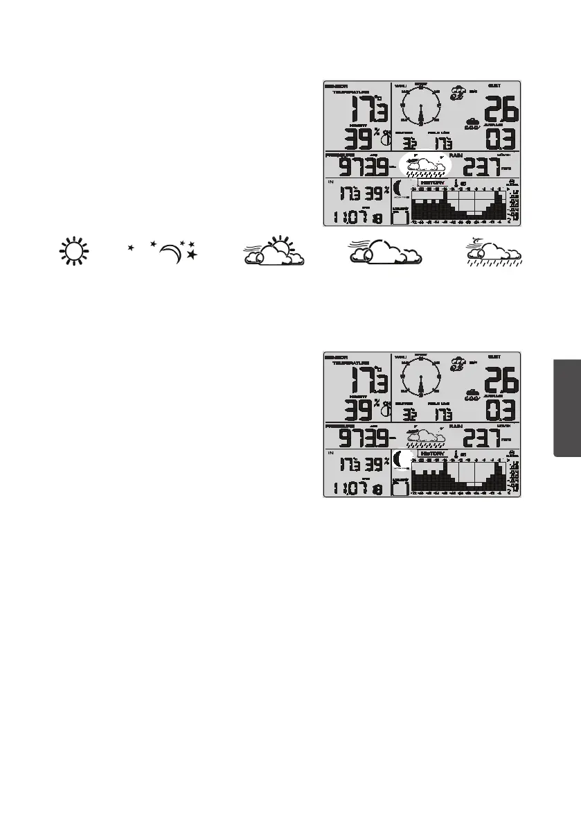 Yöllä (klo 19:00-07:00) näytetään Aurinko-kuvakkeen sijasta Tähdet/kuu.