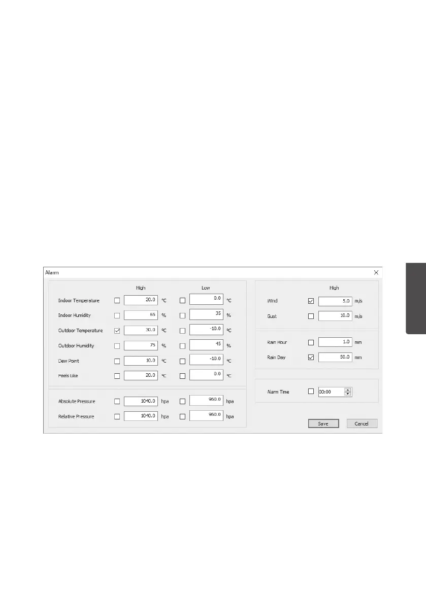 Aseta hälytysrajat ja aseta hälytys päälle tai pois päältä. Tallenna tekemäsi muutokset