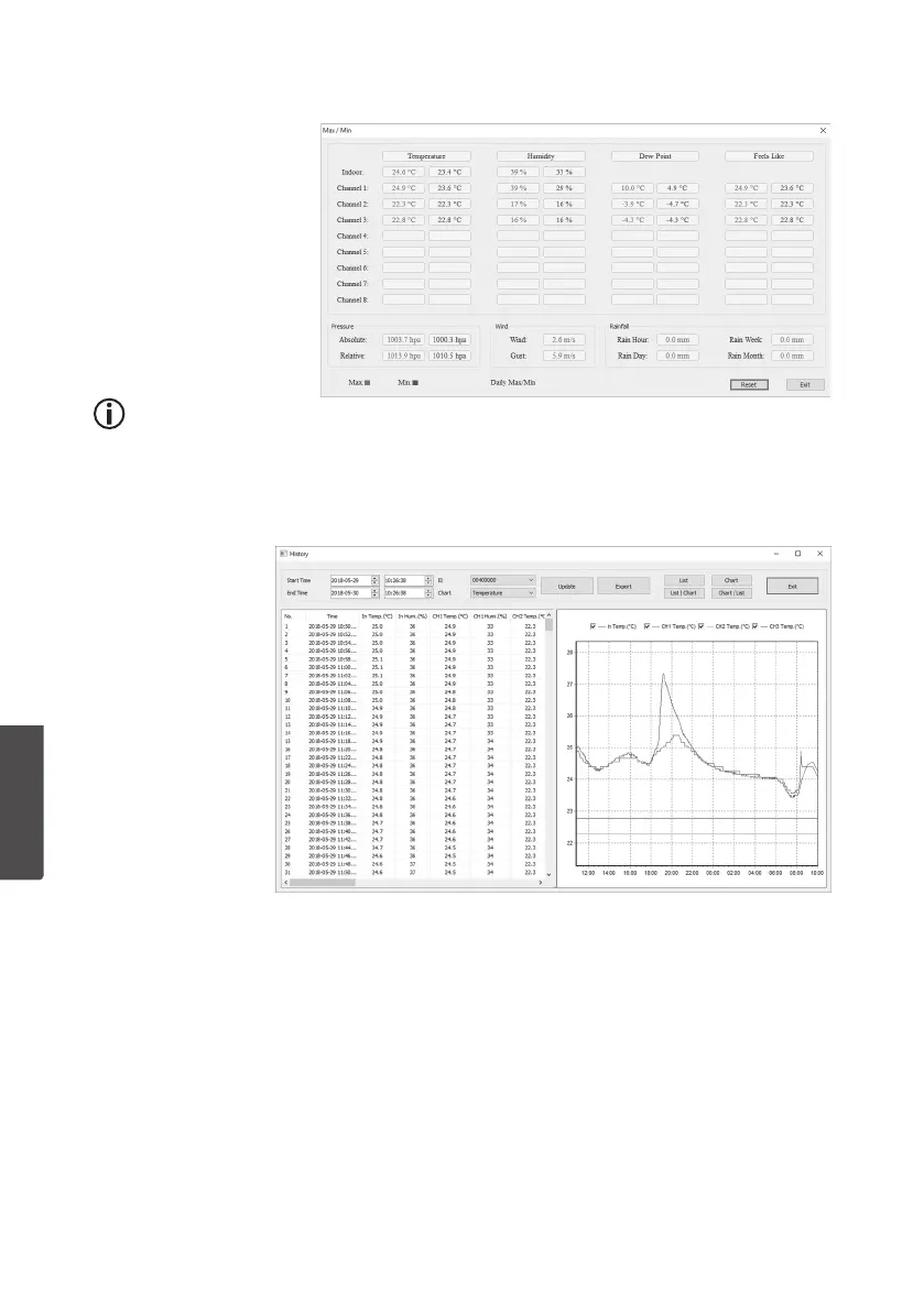Beim Zurücksetzen der Höchst-/Tiefstwerte werden diegespeicherten Werte aller
