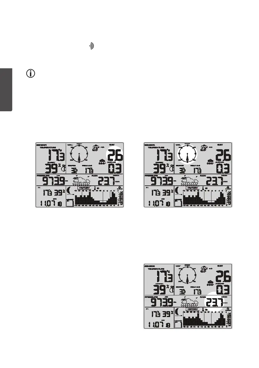 Sökningen indikeras med . Om du har fler än en termometer/hygrometer växlar