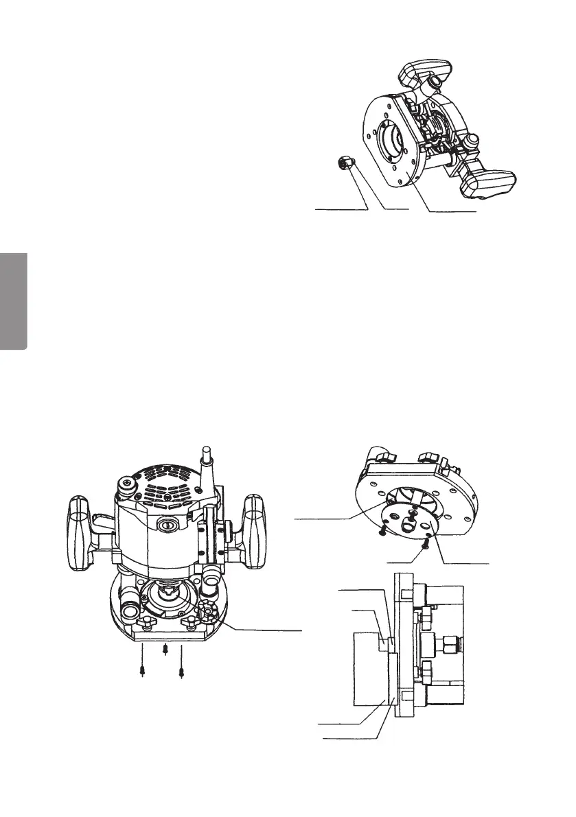 2. Skru fast kopieringshylsen med de tre vedlangte skruene.