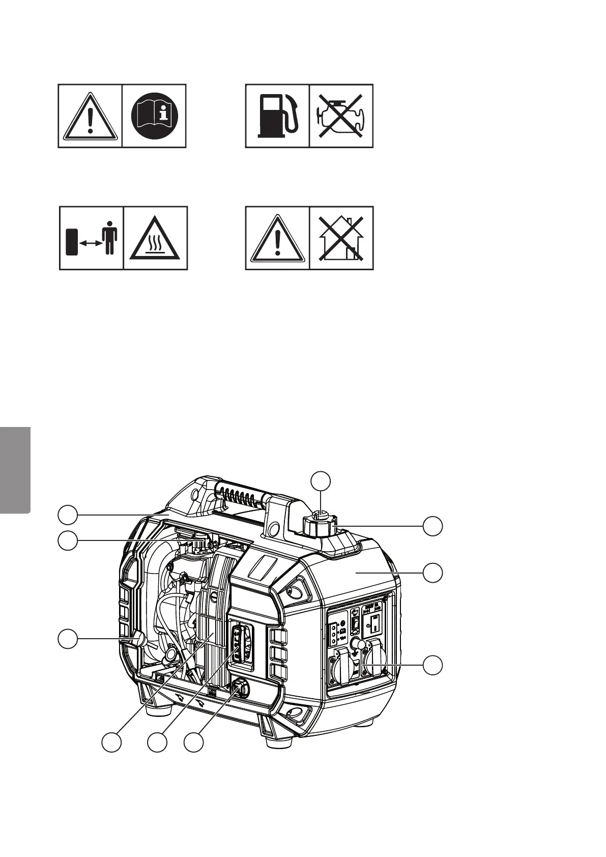 Der Generator darf nicht in Gebäuden
