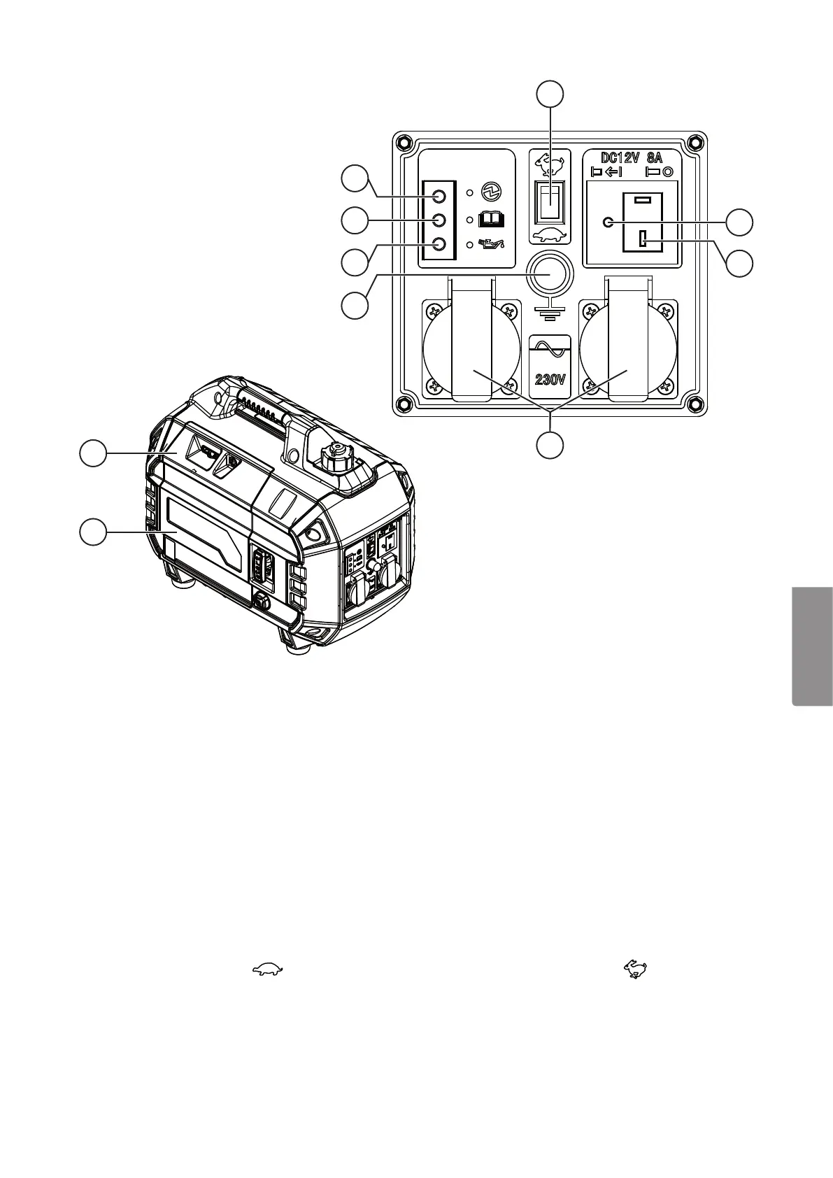 1. Motorschalter I ON/0 OFF kombiniert mit dem Benzinhahn