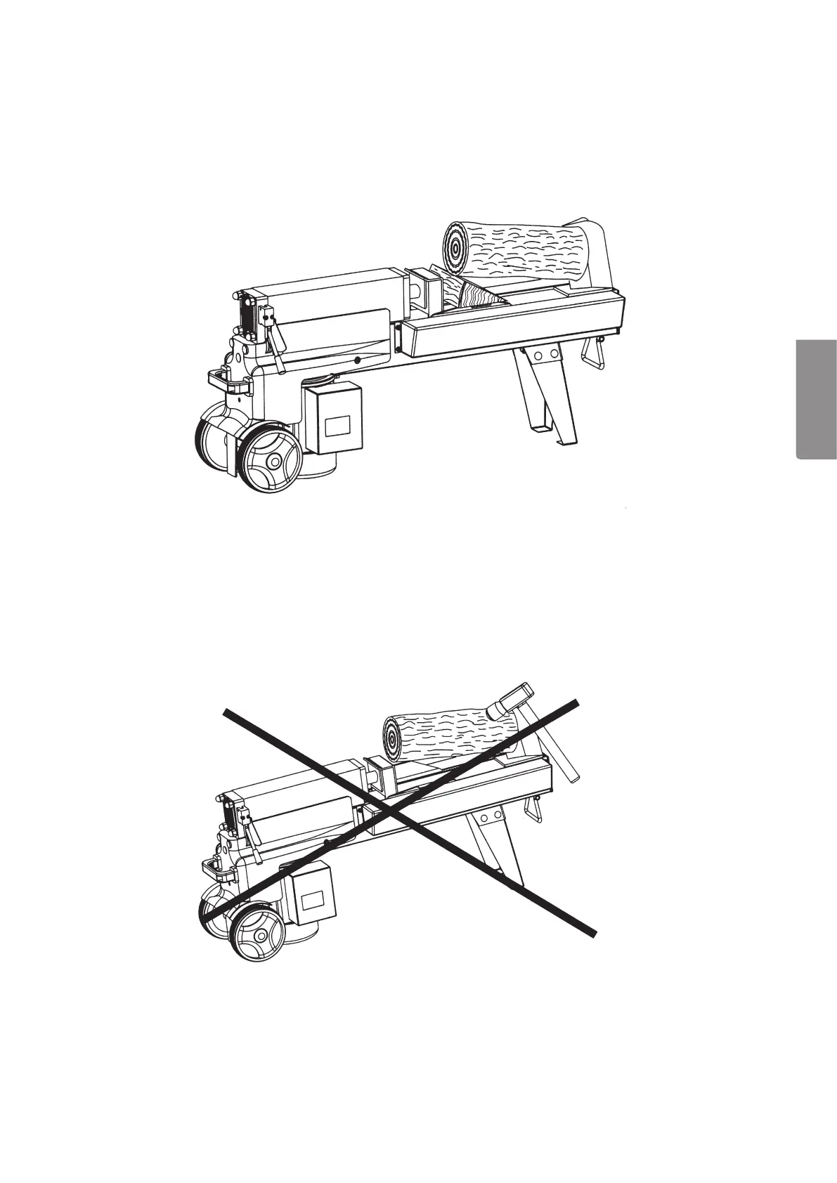 • Start kløyveren og trykk kilen inn ved hjelp av trykkplaten.