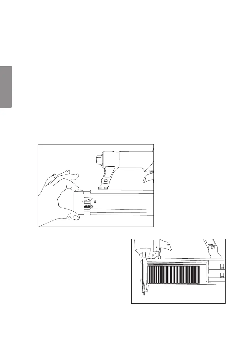 7. Tryck verktyget mot arbetsytan, tryck på avtryckaren. Verktyget ska spika!
