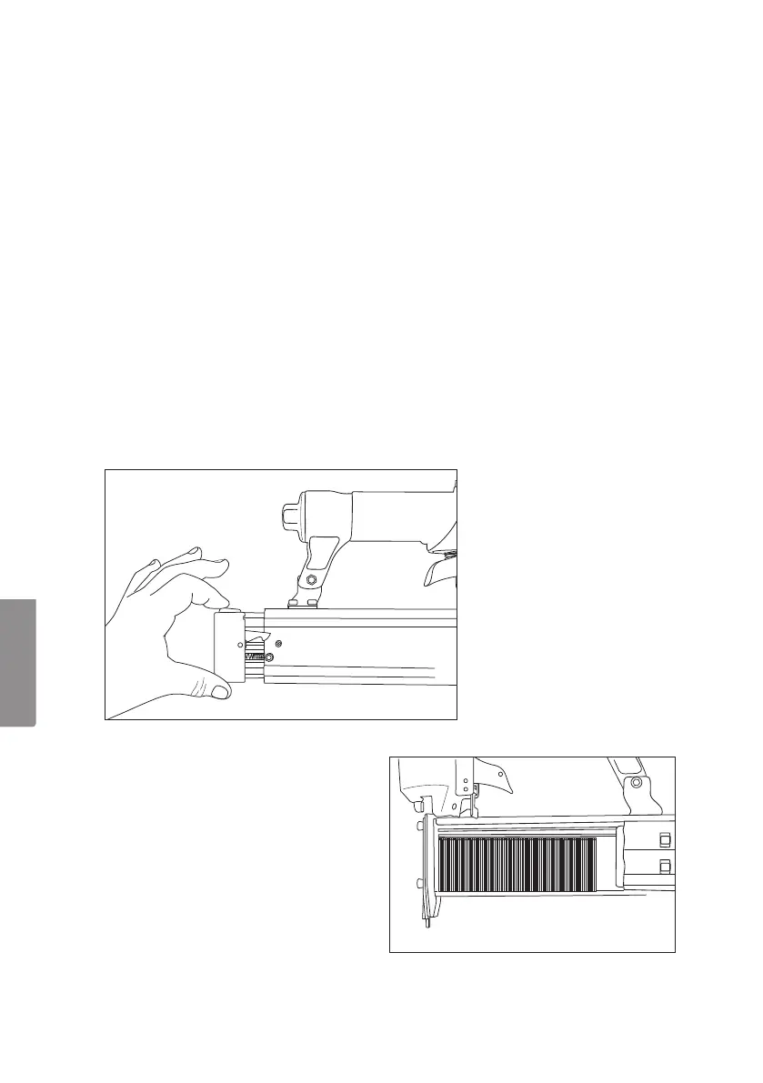 sperre zurückfährt. Den Abzug betätigen. Das Werkzeug darf nicht nageln.