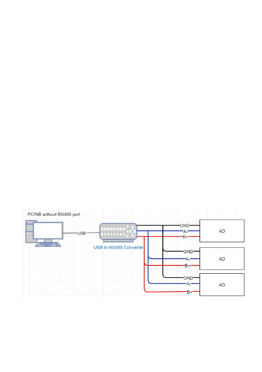 AD series use MODBUS protocol with RS-485 physical layer for communication.