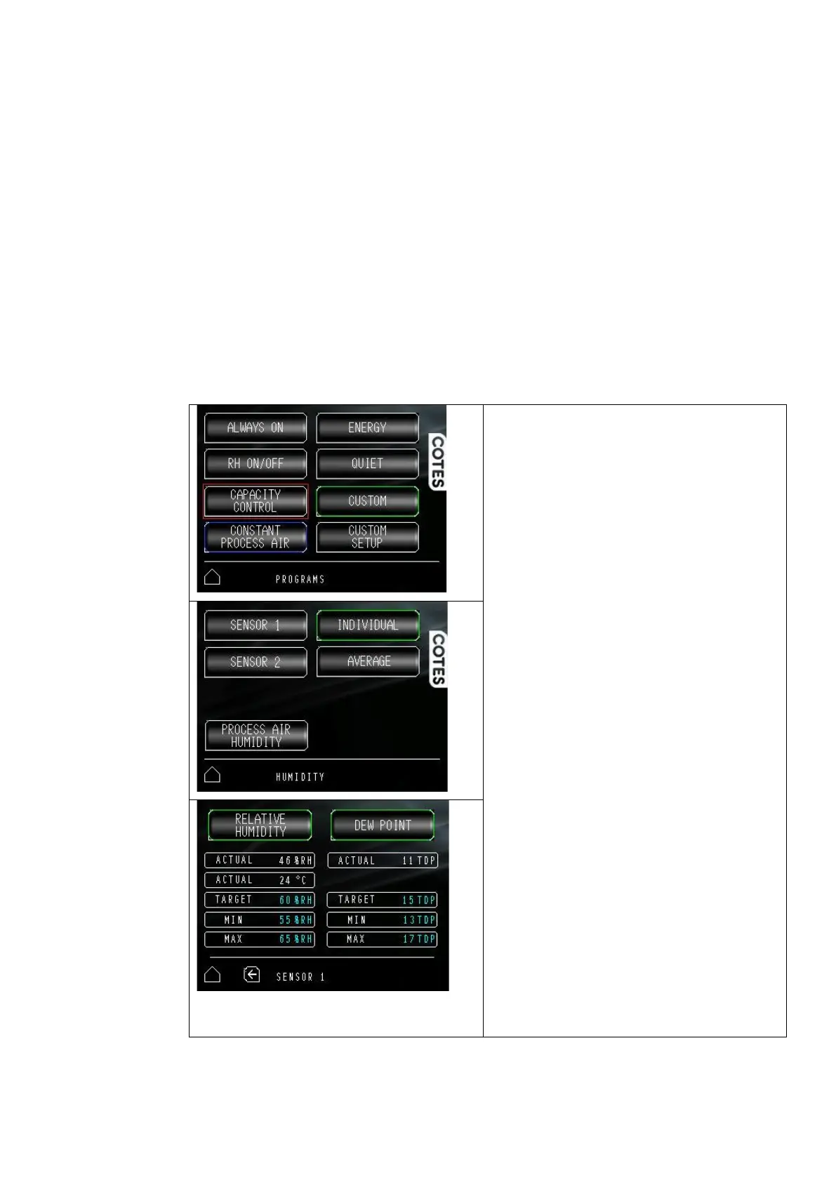 The basic programs for Cotes dehumidifiers are ALWAYS ON and RH ON/OFF. You should choose