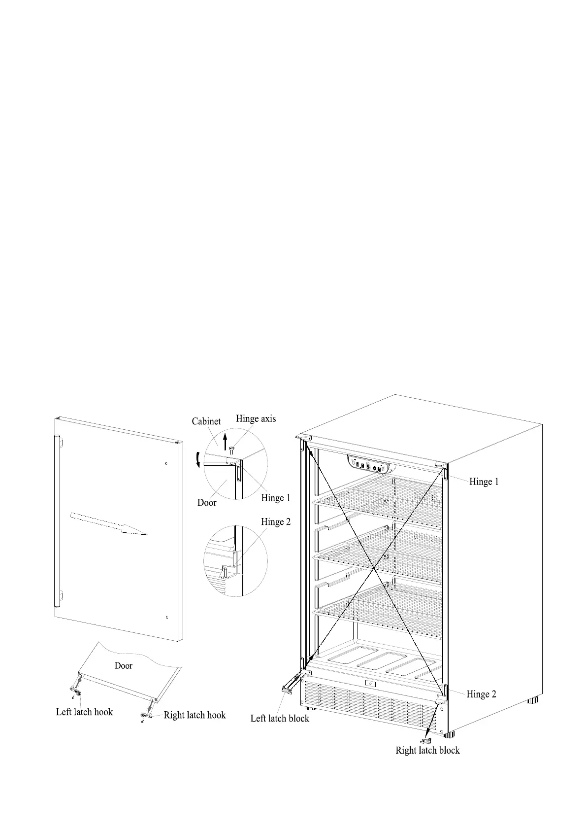 1. Remove the right latch hook located in the right bottom of the door and the sleeve in the Top of the