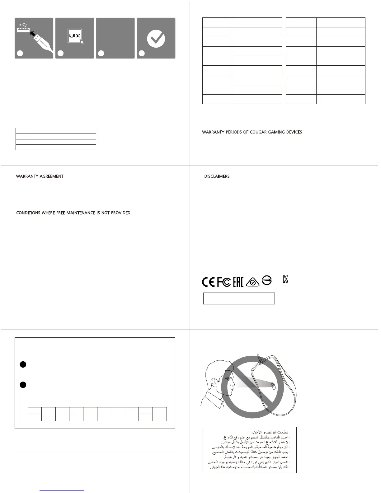 WARRANTY PERIODS OF COUGAR GAMING DEVICES