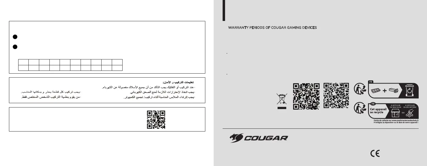WARRANTY PERIODS OF COUGAR GAMING DEVICES
