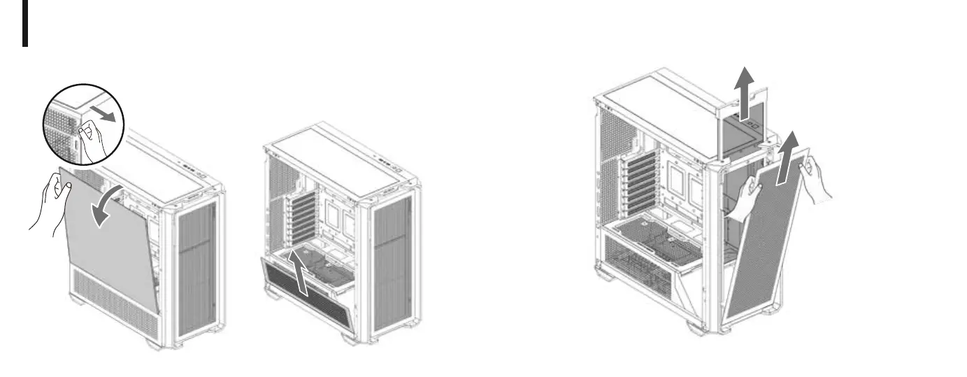 请先拆下玻璃左侧板,然后再拆下金属网孔饰板。
