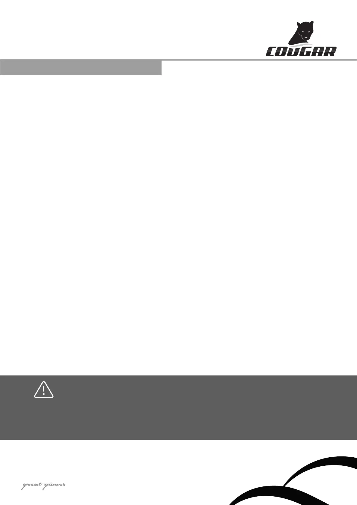 plezier zult hebben. Cougar verstrekt op dit product - bij juist gebruik - een garantie van 2 jaar. Mocht het product u niet in