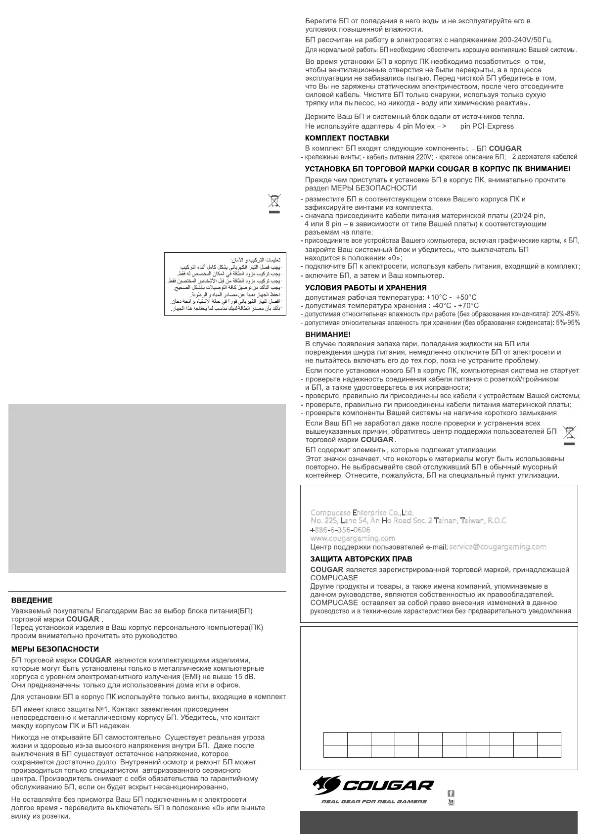 parts. In case of a guarantee service, the customer should claim the COUGAR PSU at the retailer,