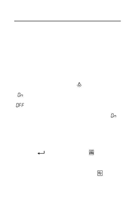 “ ”: Backlight turns on when a button or knob is used and turns off