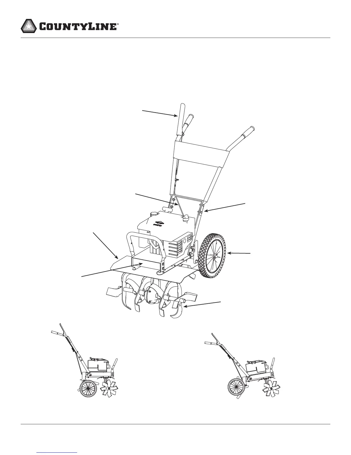 The advantage of the CountyLine® gear drive front tine rototiller, over other front tine tillers, is the exclusive hinged tail mount,