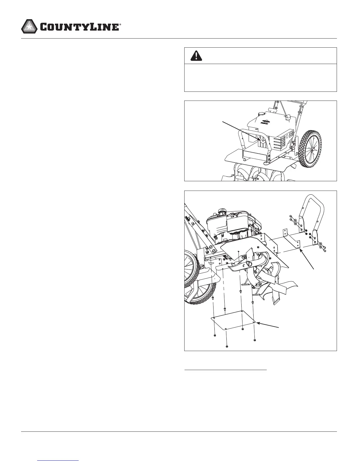 4. Reinstall front belt cover and dirt shield plate onto tiller frame.
