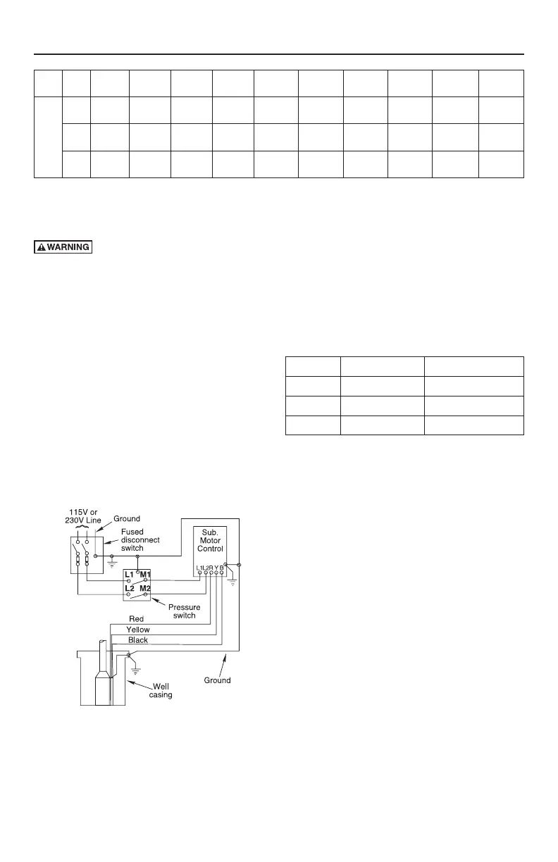 Single Phase, 3 Wire Cable, 60 Hz (Copper Wire Size - Service to motor)