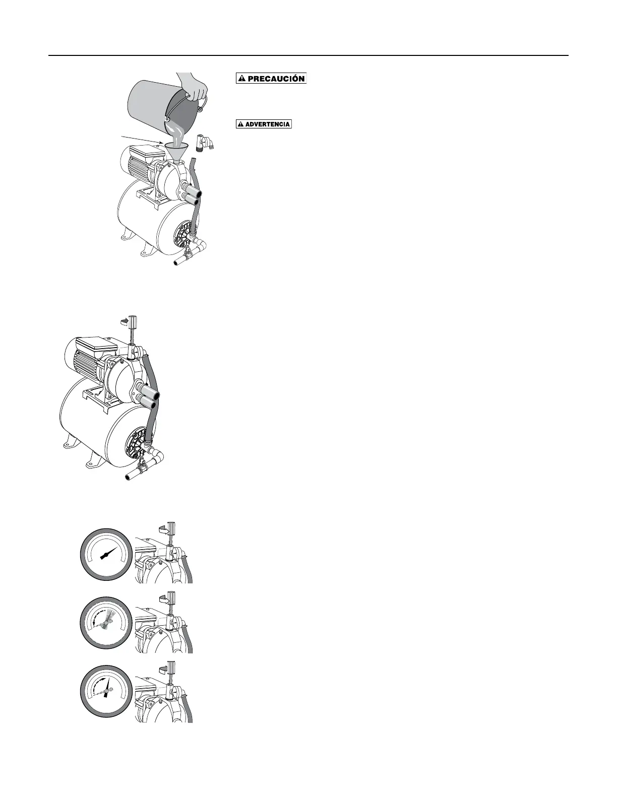 bomba, retire los tapones de llenado, vuelva a abrir la válvula de control y vuelva a