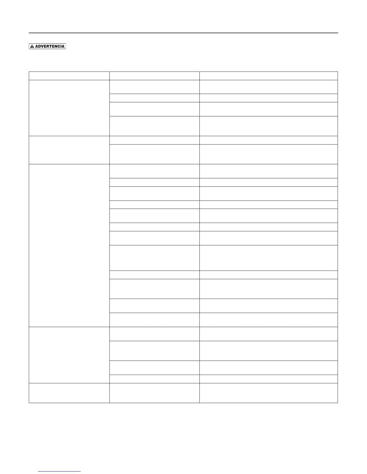 1. Cebado inadecuado. 1. Vuelva a cebar de acuerdo con las instrucciones.