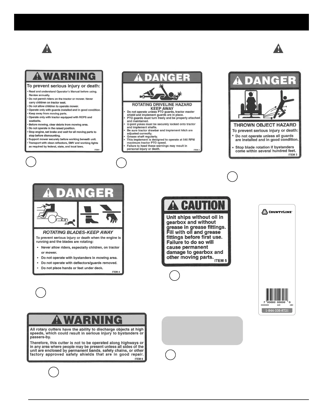 CountyLine RBRC402CL - SAFETY AND INSTRUCTION DECALS; DETAILED DECAL DESCRIPTIONS