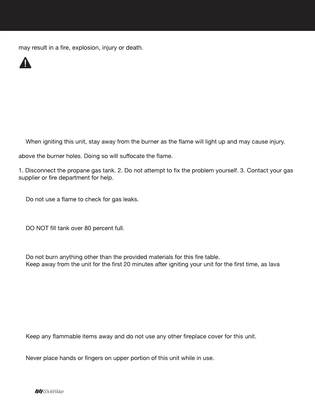 • LP GAS WARNING: Do not use any more than 1/4in depth lava rocks/pumice stones/LavaGlass™