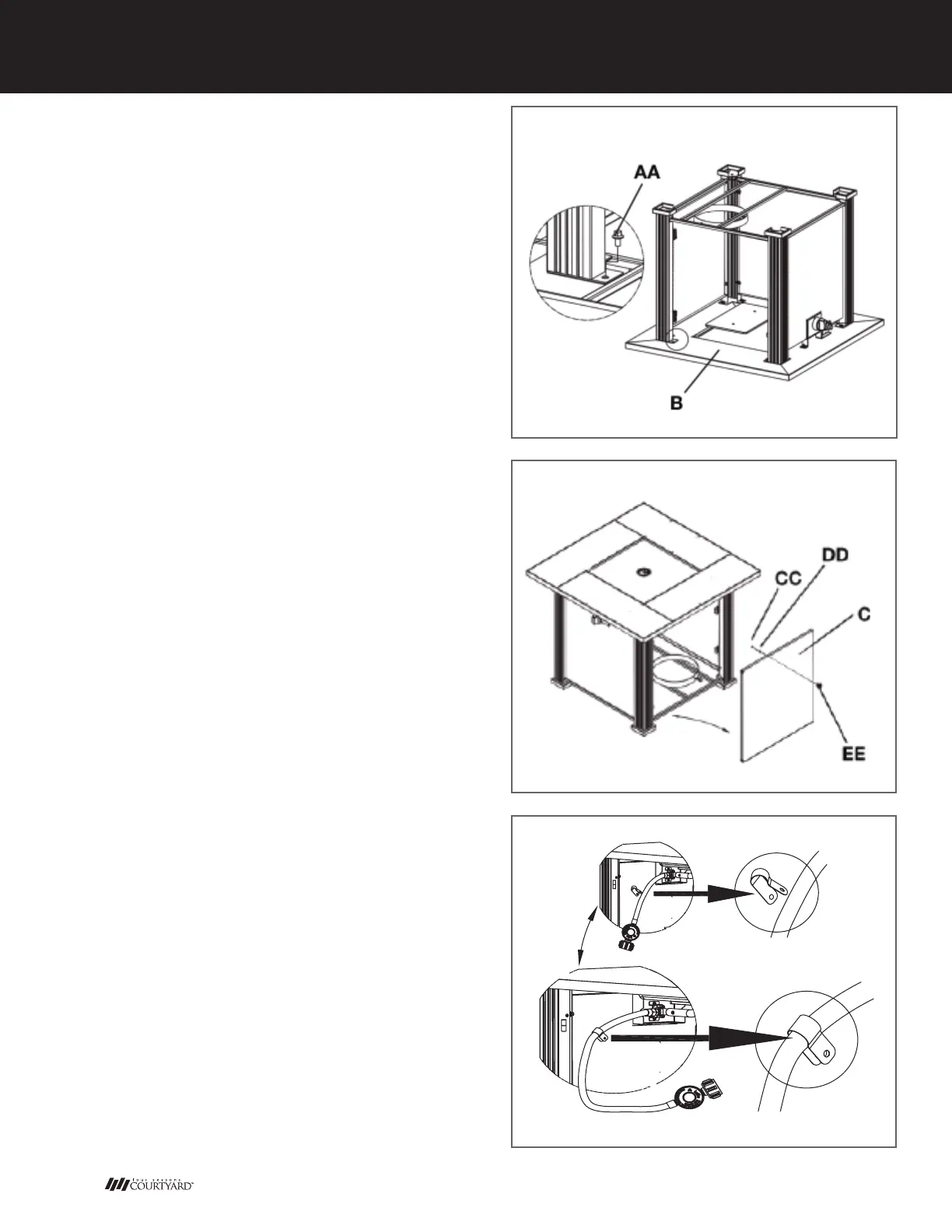 table top (B) using 8 pcs M6 x 10 screws (AA).