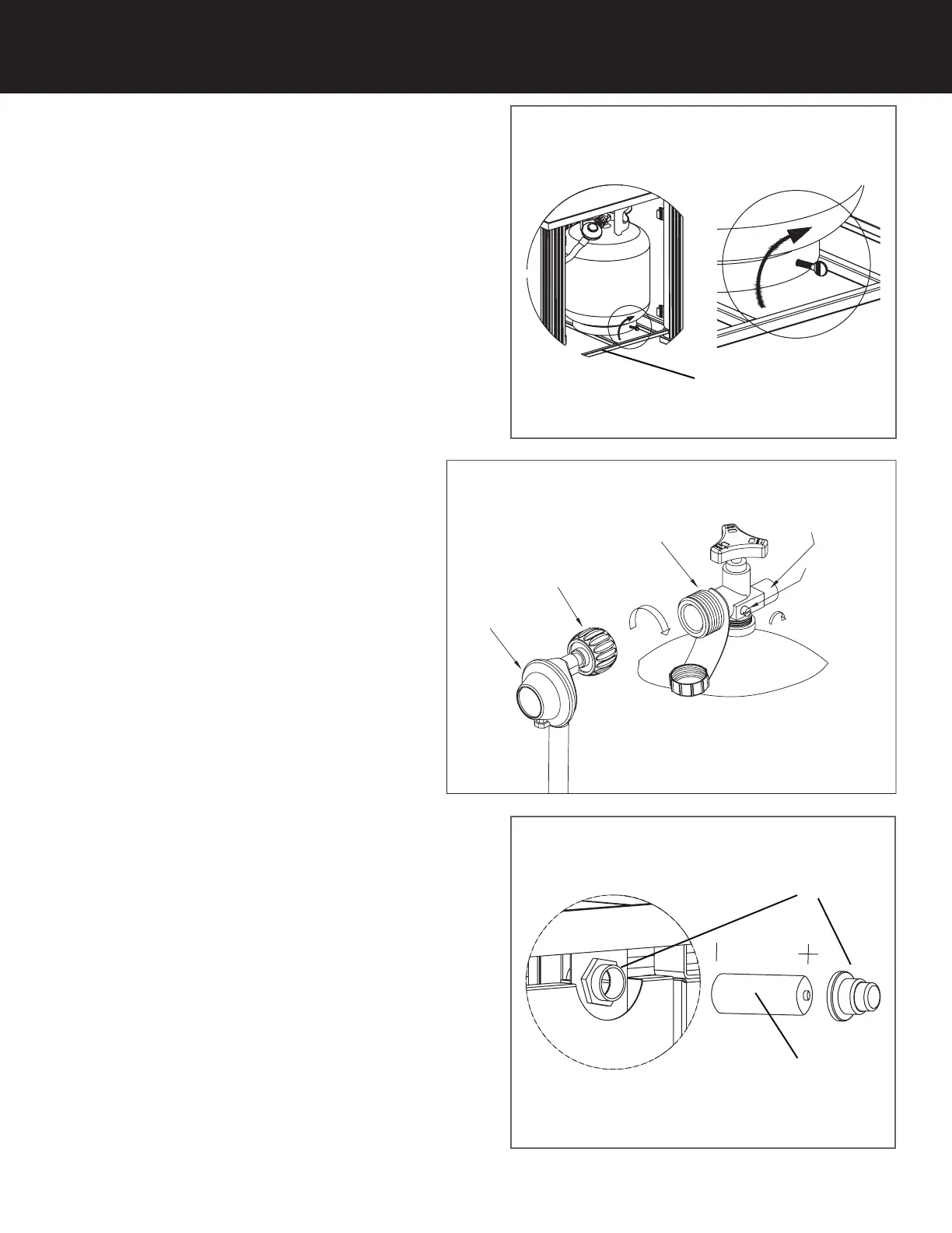 7. Place propane gas tank (not included) into the