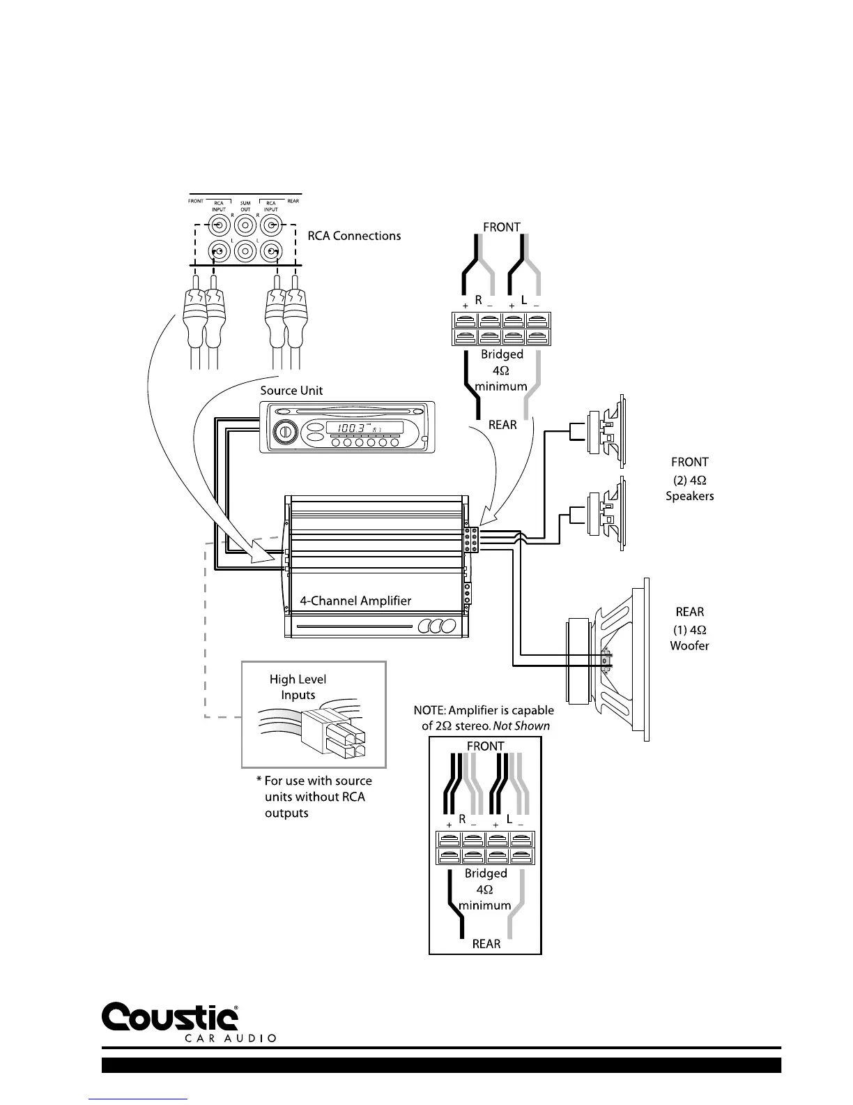 WIRING DIAGRAM (SINGLE 4-CHANNEL AMPLIFIER SYSTEM)