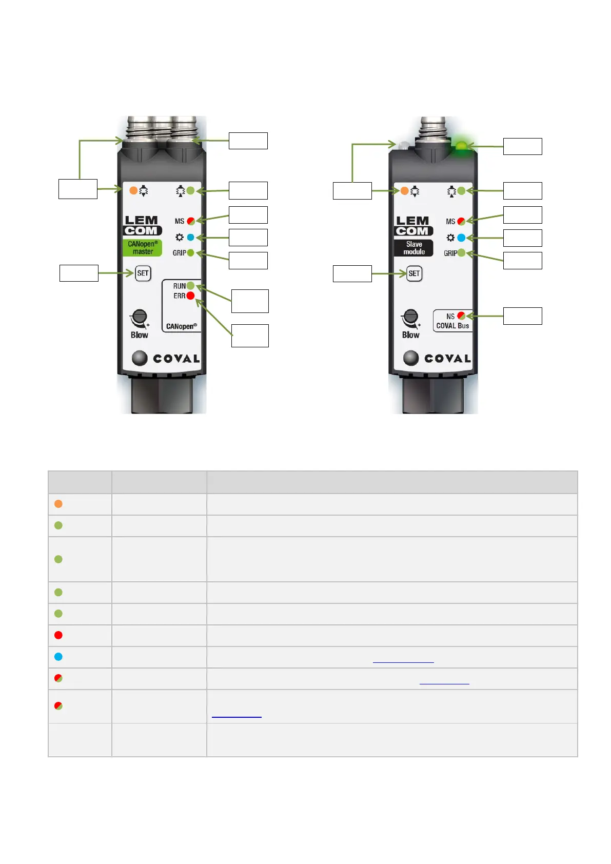 LEMCOM CANopen® – User manual Meaning of indicator lights