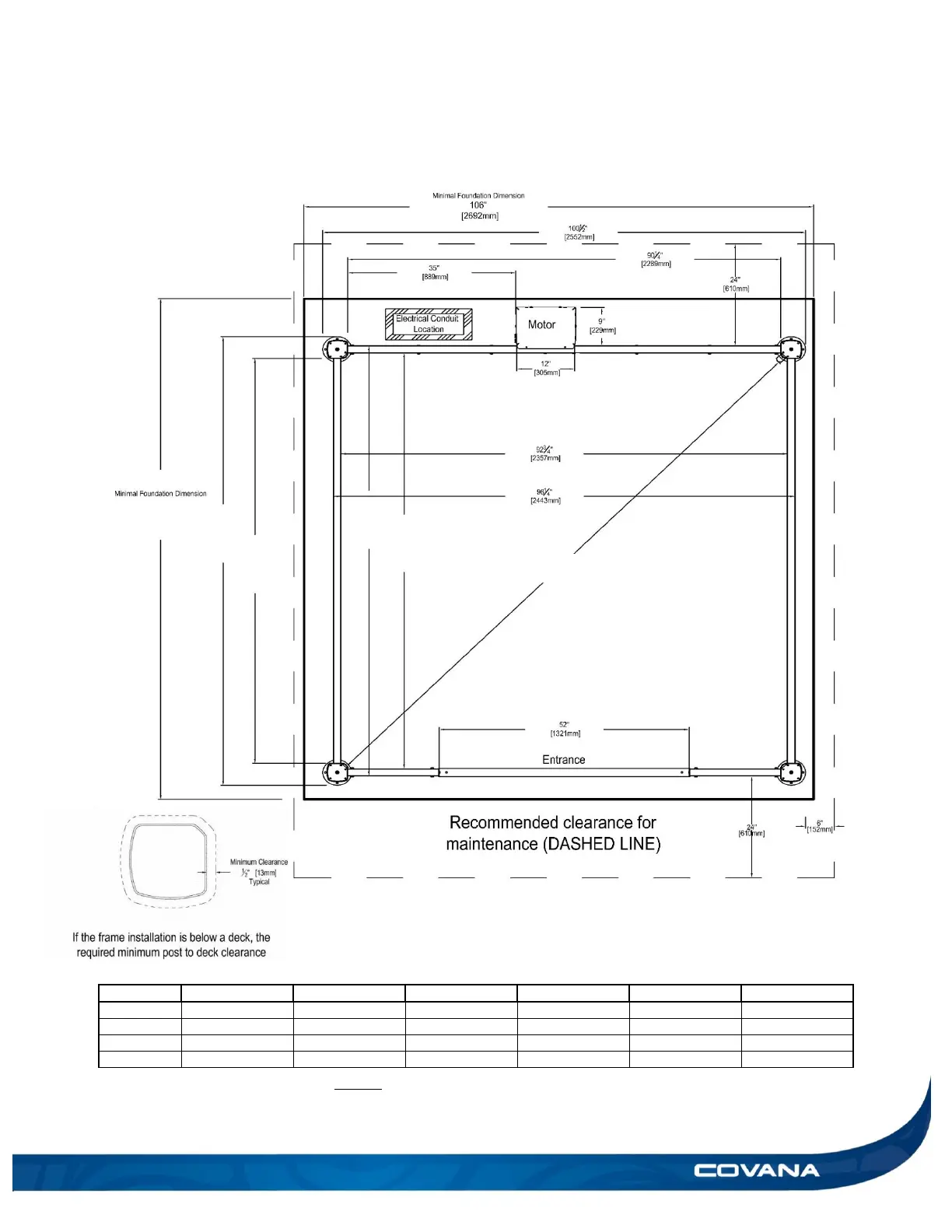 COVANA Evolution Series - Frame Dimensions and Footprint Requirements