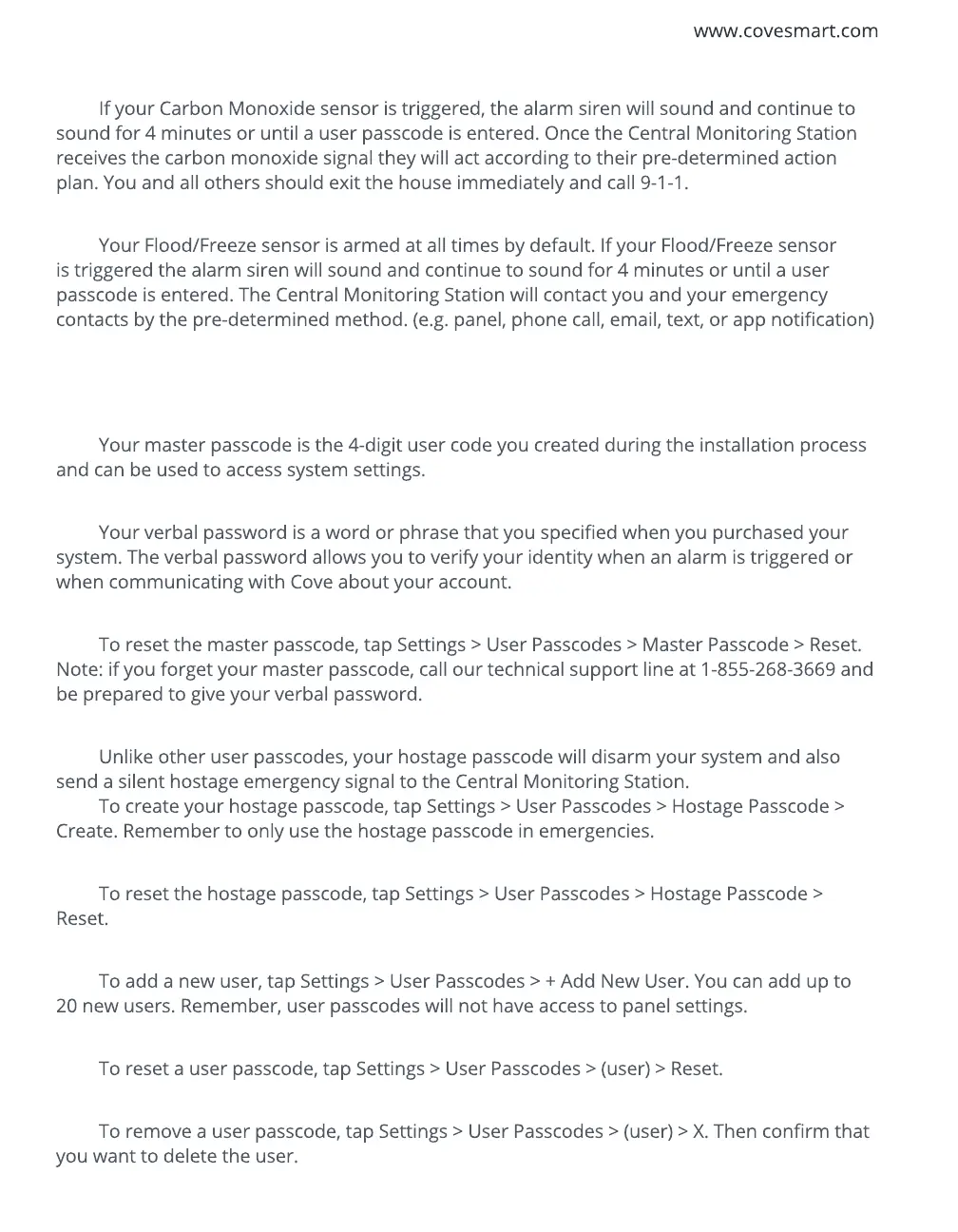 Cove SIMPLE 1 - User Passcodes