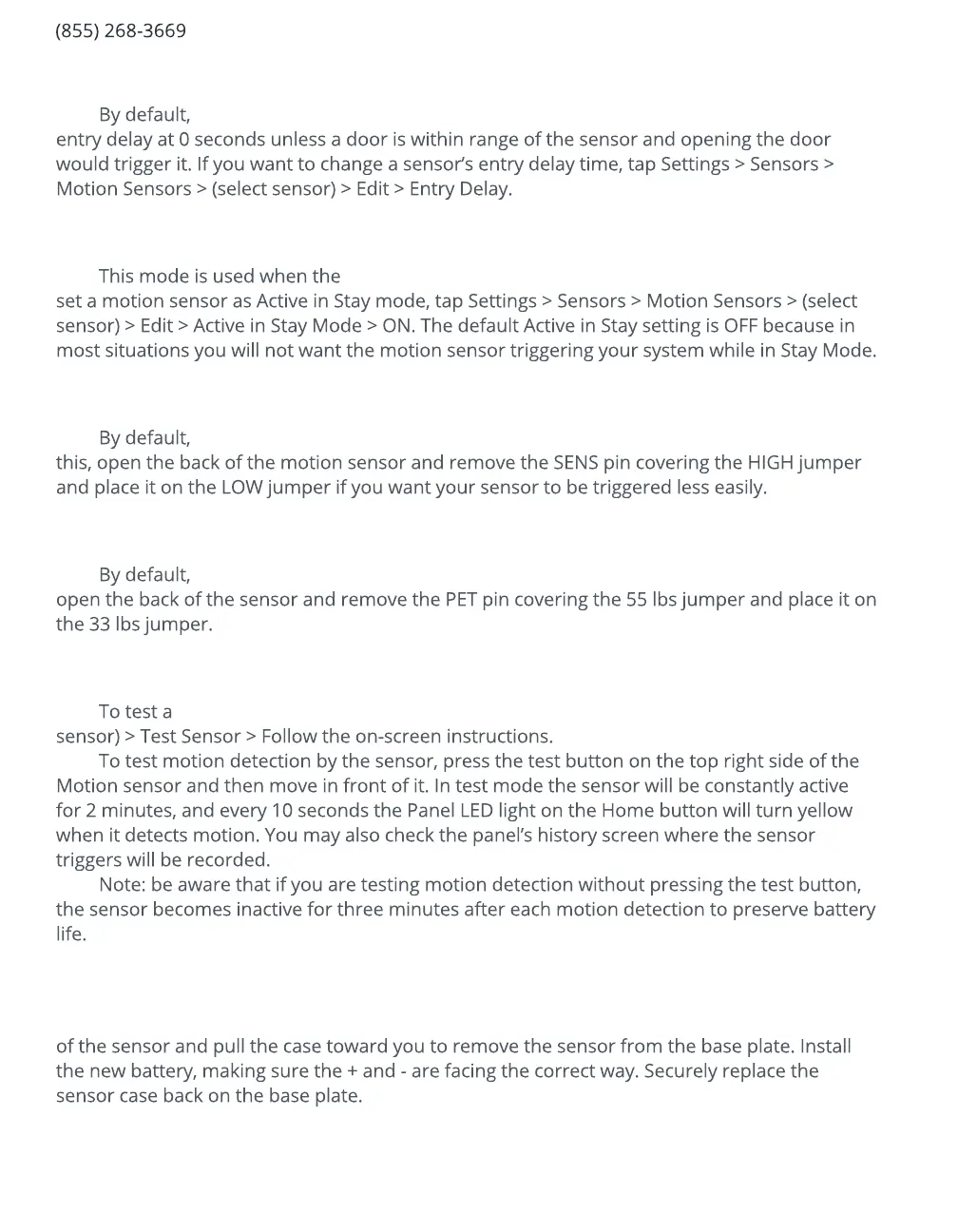 Motion Sensors are set to high sensitivity to prevent false alarms. To change
