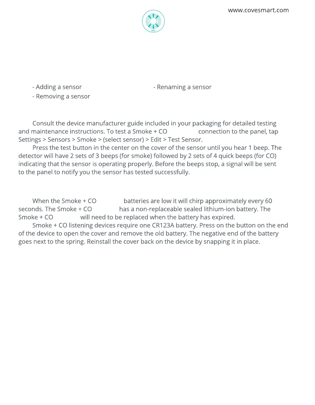 For more information, see the enclosed documents or visit www.covesmart.com/manuals