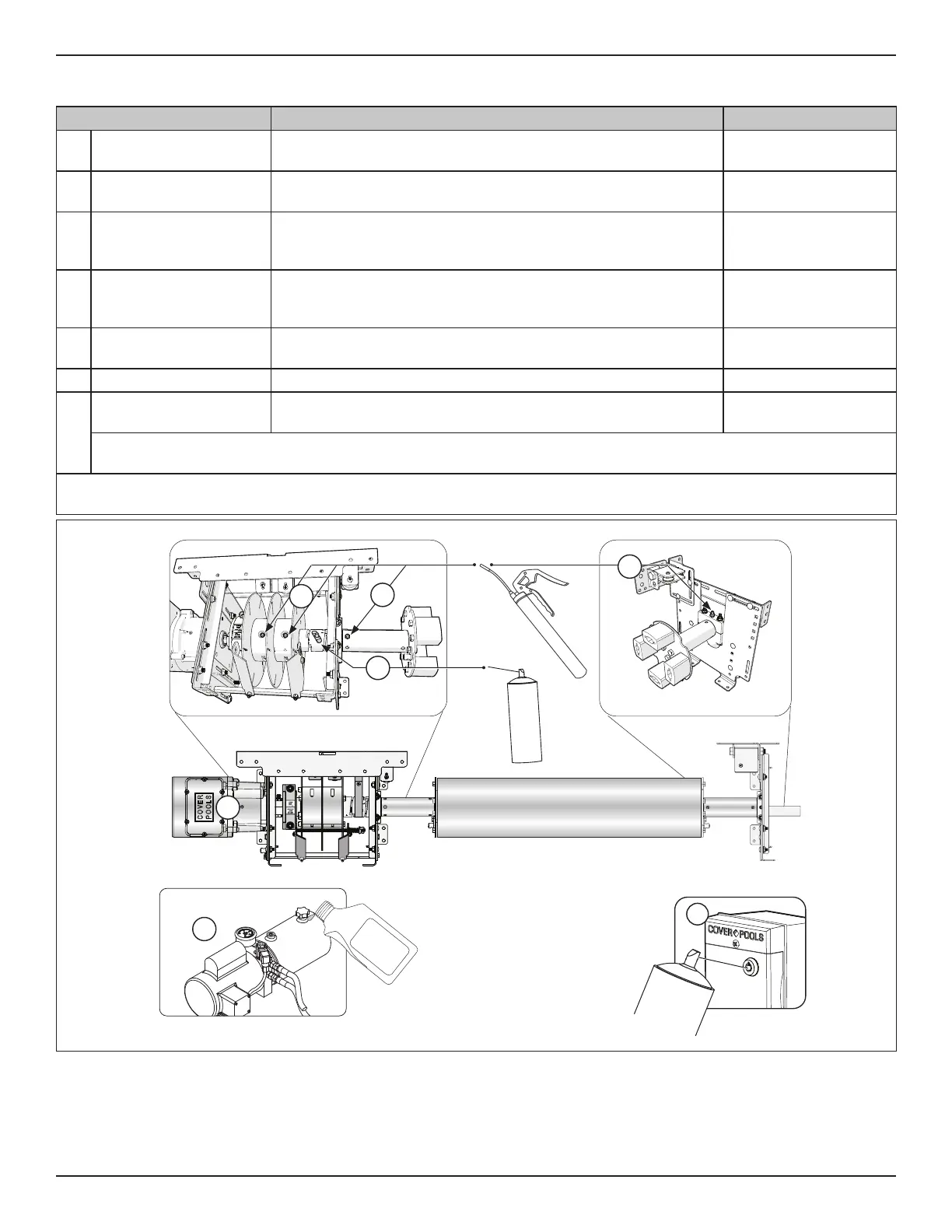 Figura 4. Piezas que requieren lubricación (consulte la Tabla1)