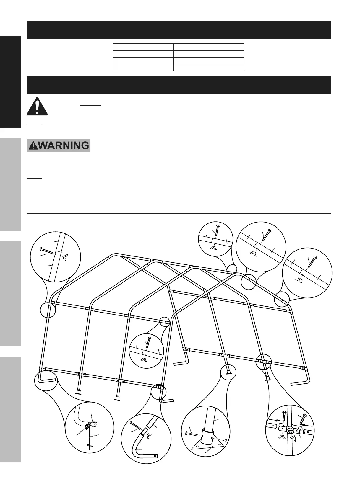 Note: At least 3 workers are required for assembly. Before starting assembly, review the instructions and make