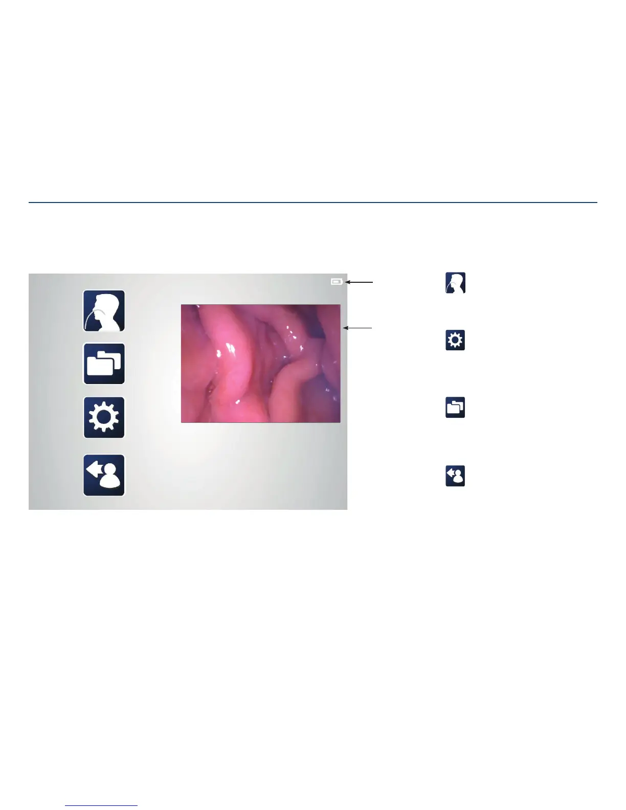The main menu provides links to log out, settings, file management, and procedure Initiation. Clicking any of these