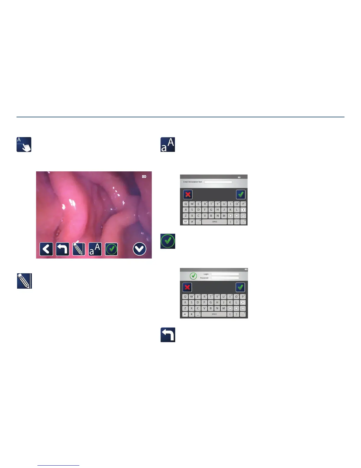 Tap the icons to add text, lines, or undo actions. A reviewer can view the