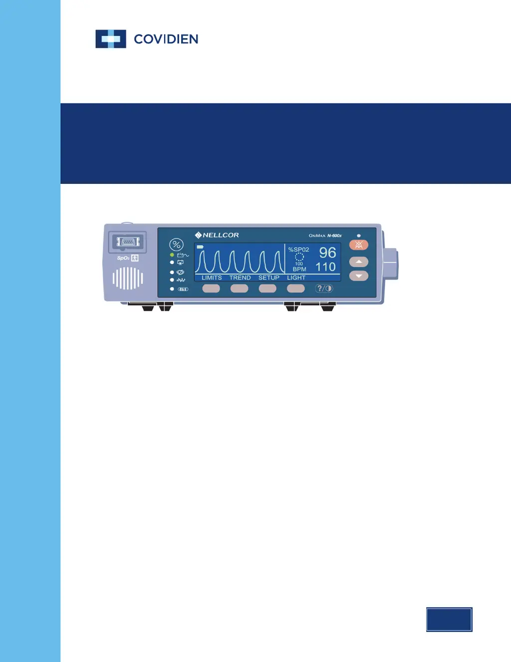 If the Covidien Medical Equipment displays an error code like “EEE XXX” followed by a number, try pressing the ON/STANDBY key to shut off the oximeter completely, then press the key again to turn it back on. Also, if the error code is “EEE 529 or 729”, make sure the SUPPLY VOLTAGE SELECTOR switch on the rear panel is set to the correct voltage for your location. This error can occur when the battery discharges to a critically low level.