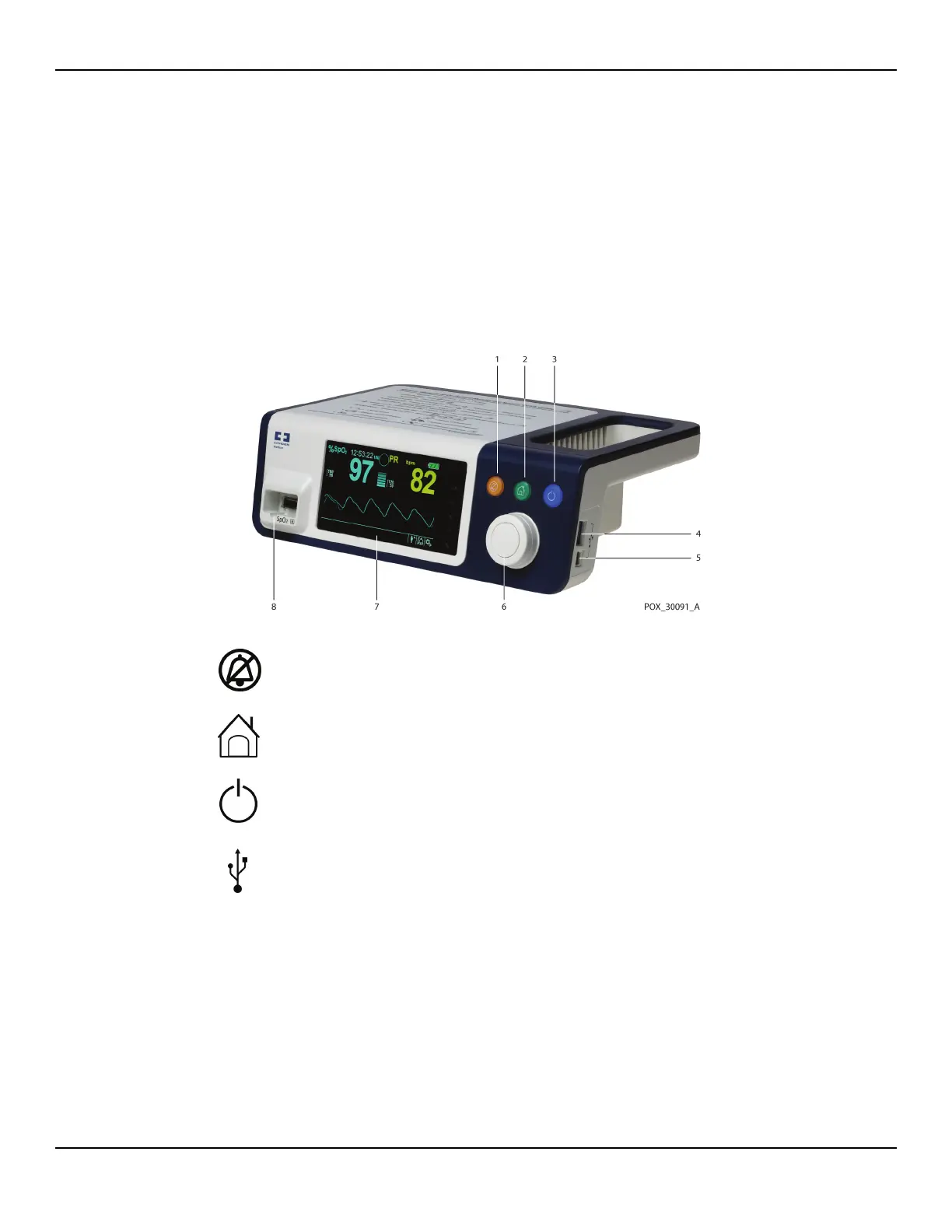 7 LCD display panel Use to monitor all graphic and numeric patient infor-