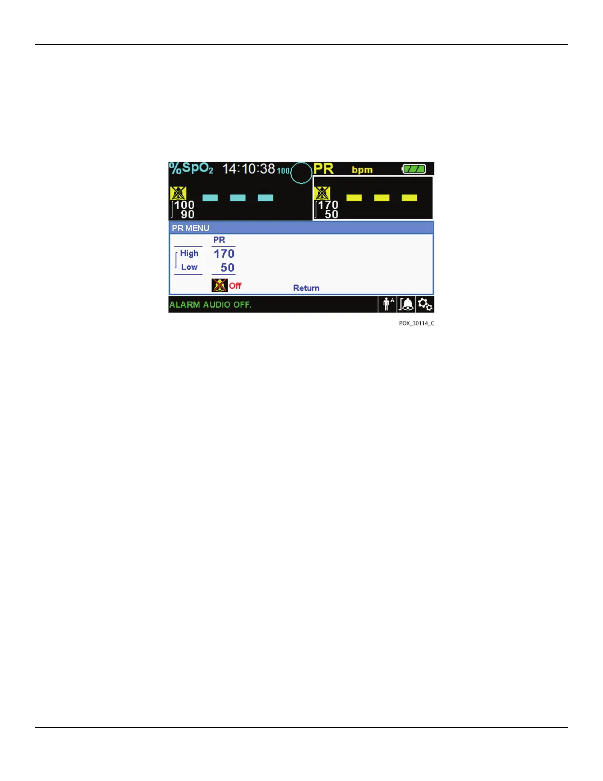 2. PR Menu — Provides access to pulse rate (PR) alarm limit settings and alarm inhi-