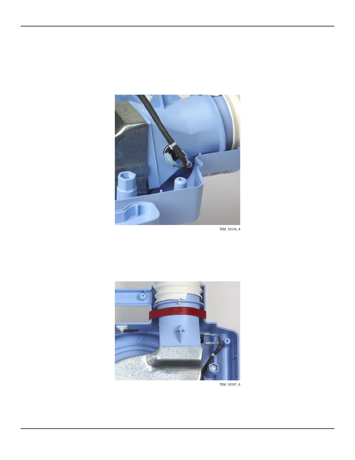 13. Using a strap or cable tie, secure the hose duct adapter to the enclosure as shown