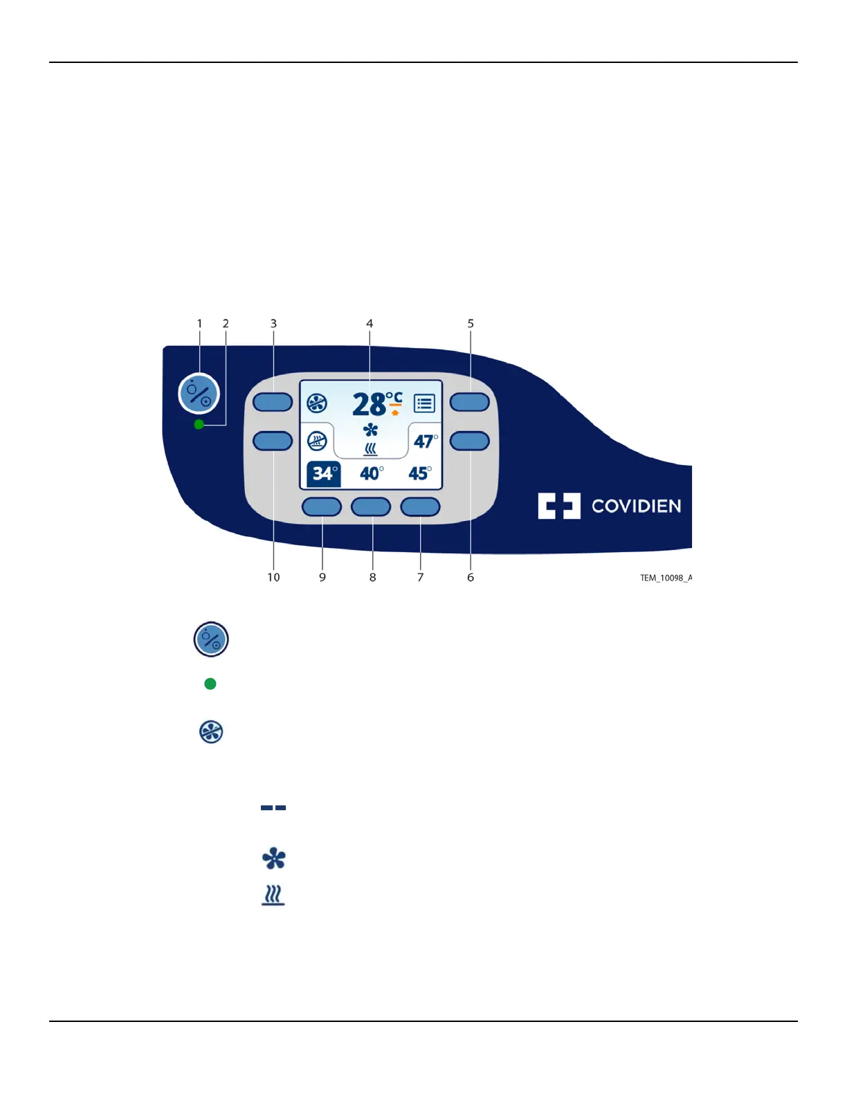 Status LED – Indicates the warming unit’s operational status. Reference Overview